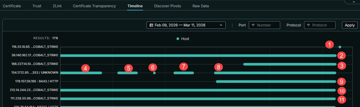 Does this number indicate the total number of host observations (each timeline bar/event) rather than the number of unique hosts that used the certificate?